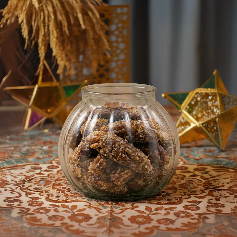 مكونات مختارة بعناية تجمع بين الحلاوة الطبيعية والقيمة الغذائية، تقدم أصابع من التمر محشوة بكريمة الفول السوداني، مع إضافة الفول السوداني واللوز